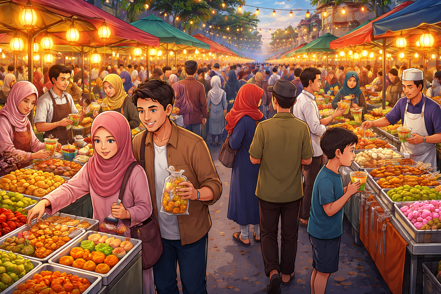 “Setiap tahun pasti ramai, apalagi kalau sudah mendekati waktu berbuka,” ujar salah satu pedagang.