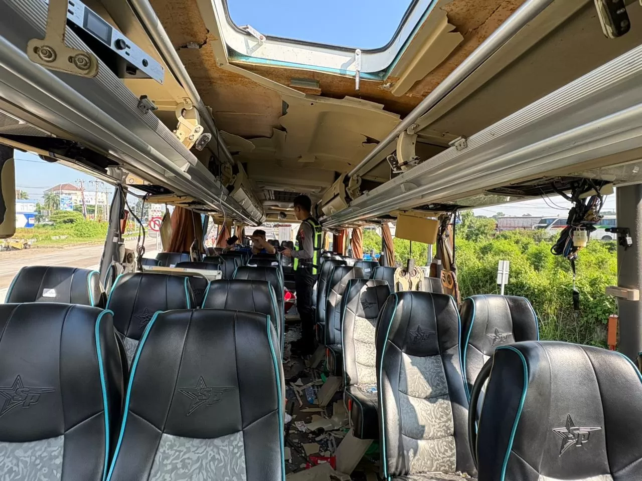 Peristiwa tersebut terjadi secara mendadak dan memicu kobaran api di bagian dalam bus. Sopir bus segera menepikan kendaraan di bahu jalan tol untuk mengevakuasi seluruh penumpang. Tim medis dan petugas kepolisian yang tiba di lokasi langsung memberikan pertolongan pertama kepada para korban.